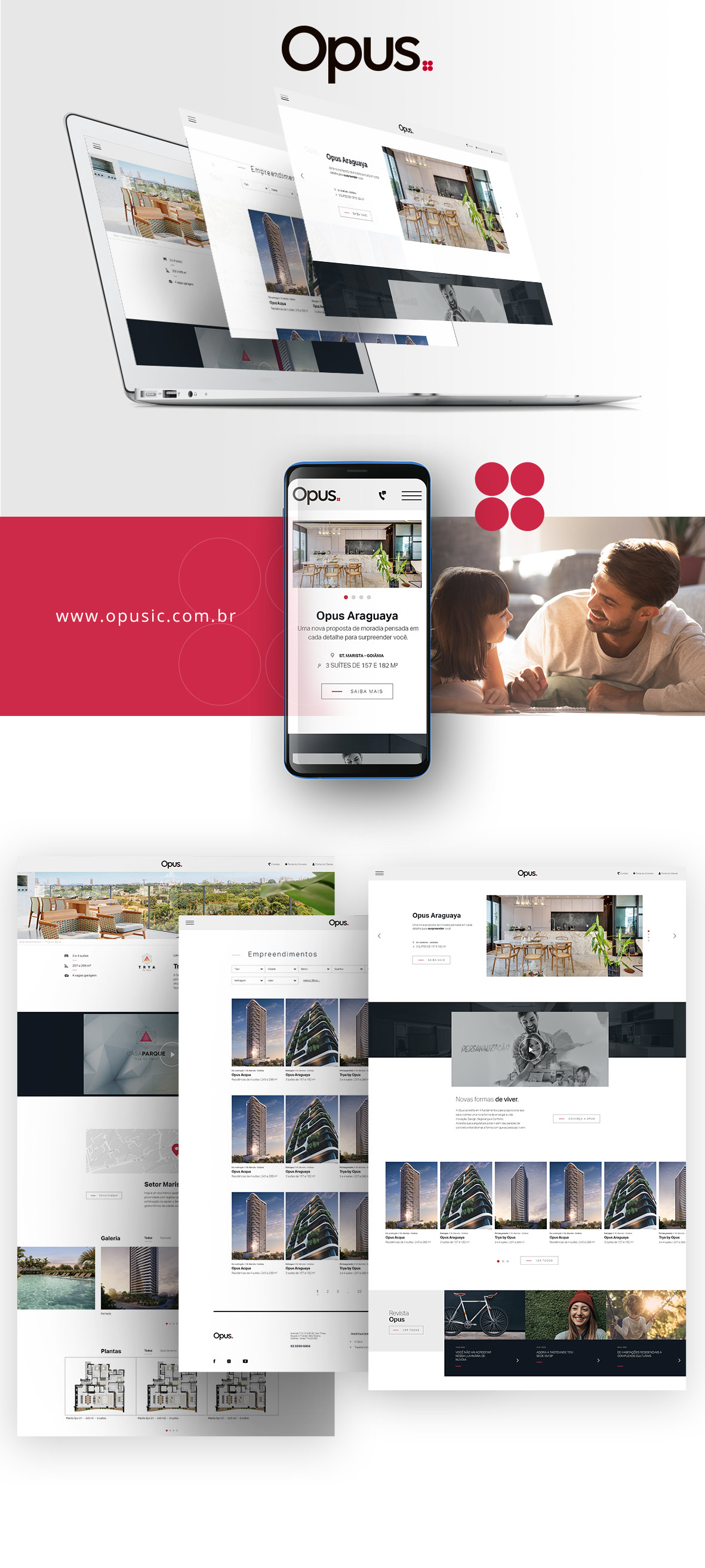 Fomos responsáveis pelo desenvolvimento do novo website da Opus, uma incorporadora conhecida por seus empreendimentos de alto padrão, que surgiu em 2006 com uma missão: encantar seus clientes. Para nós foi uma honra e, sem dúvidas, um projeto único.