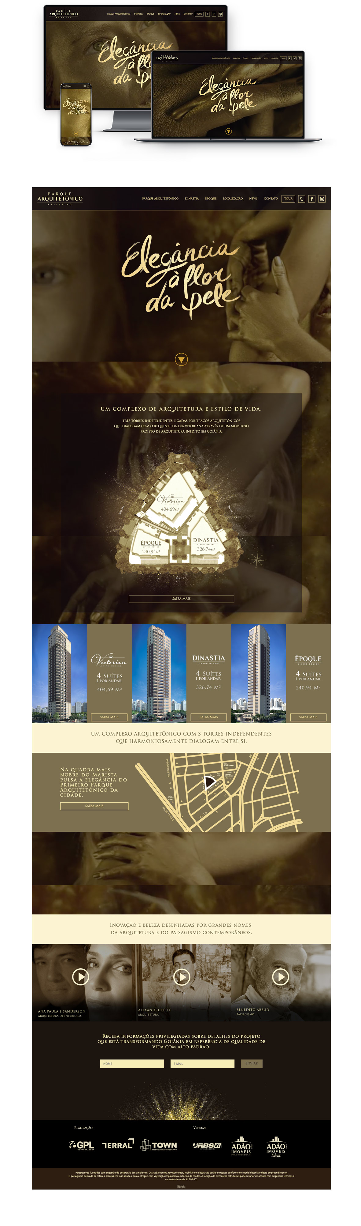 Nós fomos responsáveis por desenvolver o hotsite do empreendimento durante seu lançamento, para ser utilizado principalmente em suas campanhas de divulgação. Priorizamos aproveitar ao máximo o belo visual da identidade dele e posicionar espaços para captação de leads em pontos estratégicos.